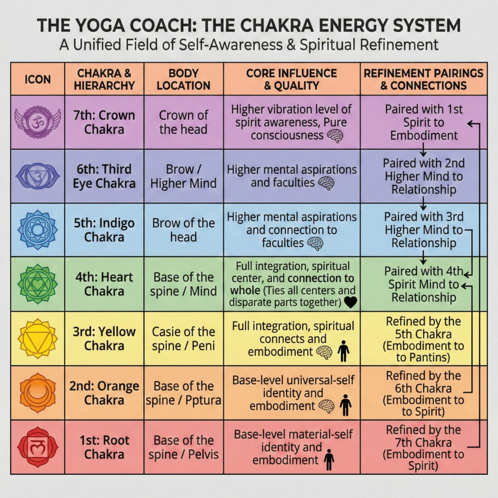 - Upper Chakras: Corresponds to higher mental and spiritual aspirations.